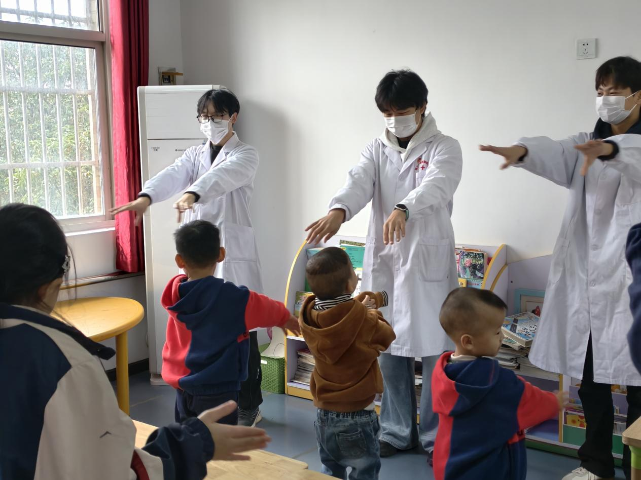 义诊伊始,会长余泓励、副会长郑志帅、文娱部刘子轩等志愿者,用拍拍操、刷牙歌点燃现场氛围。带领孩子围圈舞动、唱跳刷牙,在欢乐中传递健康知识,游戏化作“破冰剂”,为言语治疗筑牢信任底色。