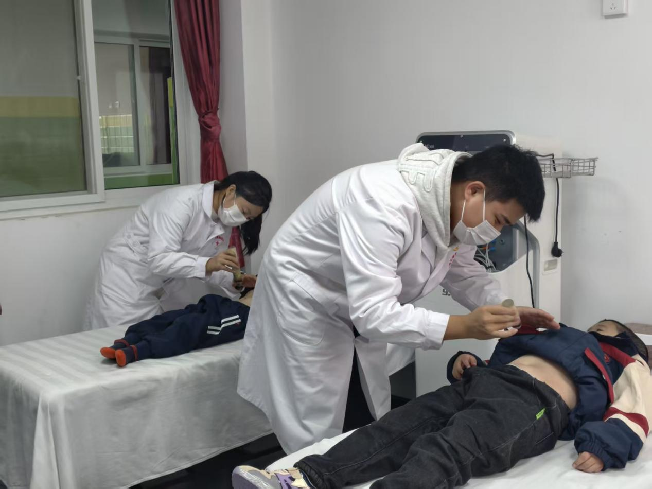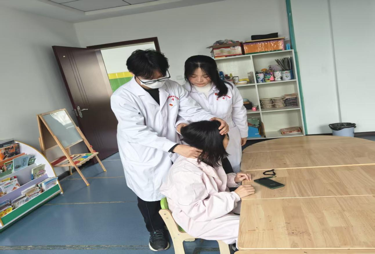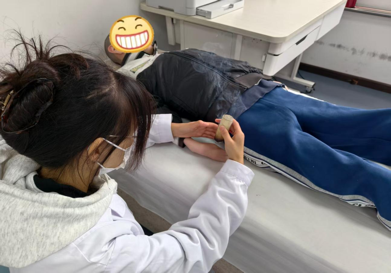 艾灸推拿区,会长贾周玉、副会长米科宁、教学部周佳等志愿者尽显专业。他们严守艾灸技法,细调艾温、精准取穴,施灸时轻声询问孩子感受;推拿时手法轻柔,力道适中,呵护孩子娇嫩身体。艾香袅袅间,中医智慧与暖心关怀相融,既温暖了童心,也让志愿者在实操中锤炼本领,让“第二课堂”成为守护童心的真实力量。
