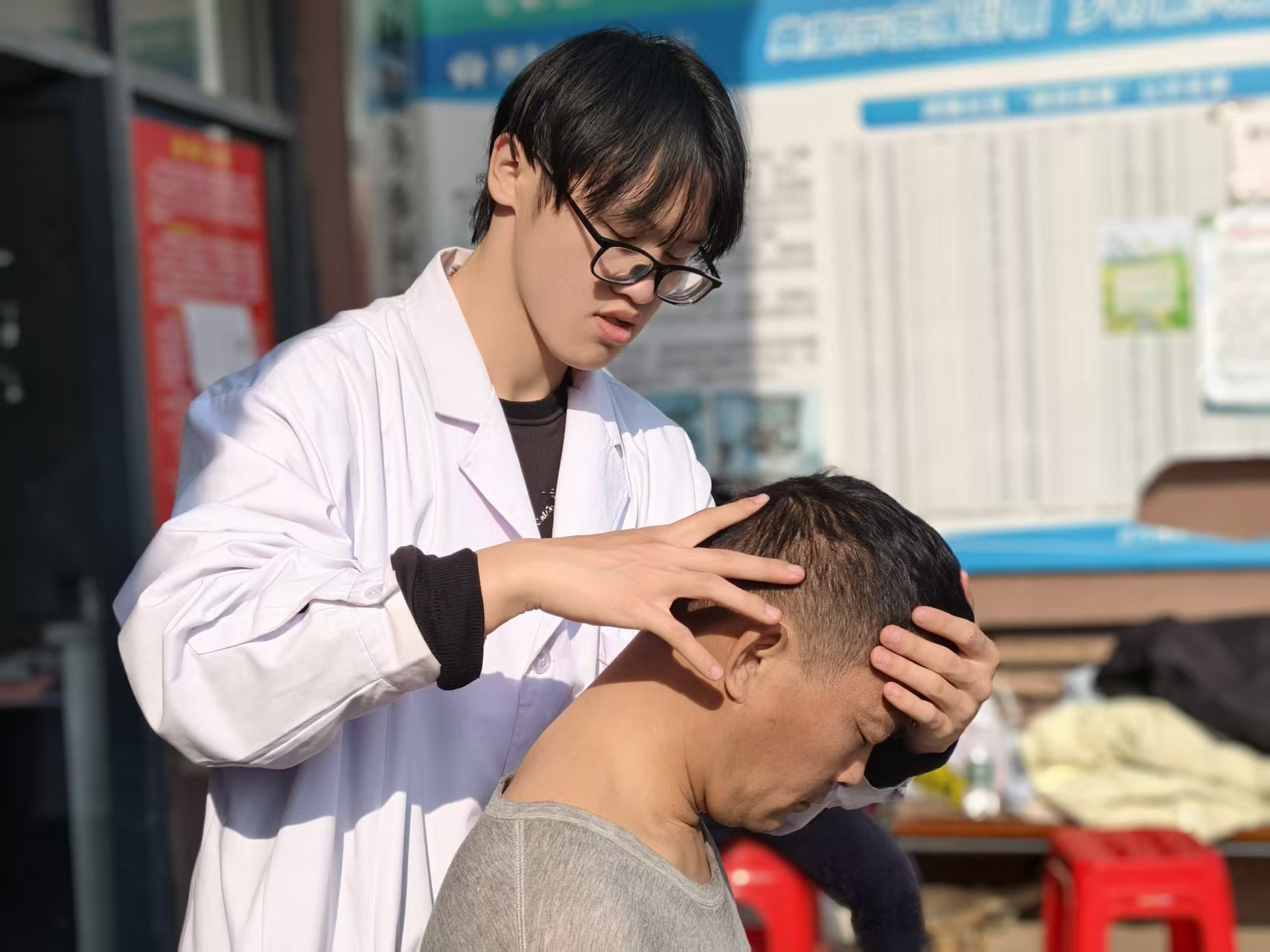 推拿服务中,同学们针对早起劳作引发的颈椎劳损、腰背酸痛、关节僵硬等常见病,运用《推拿治疗学》中的专业技法,施予头面部、颈项部、腰背部系统的捏、拿、按等手法,帮助居民放松肌肉、疏通经络,不少体验者称赞手法专业,缓解不适的效果较好。